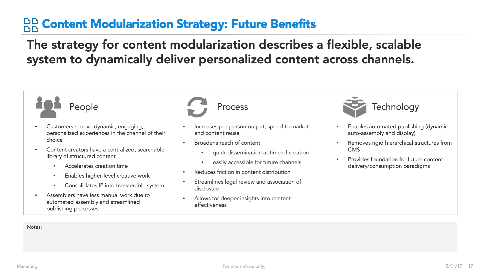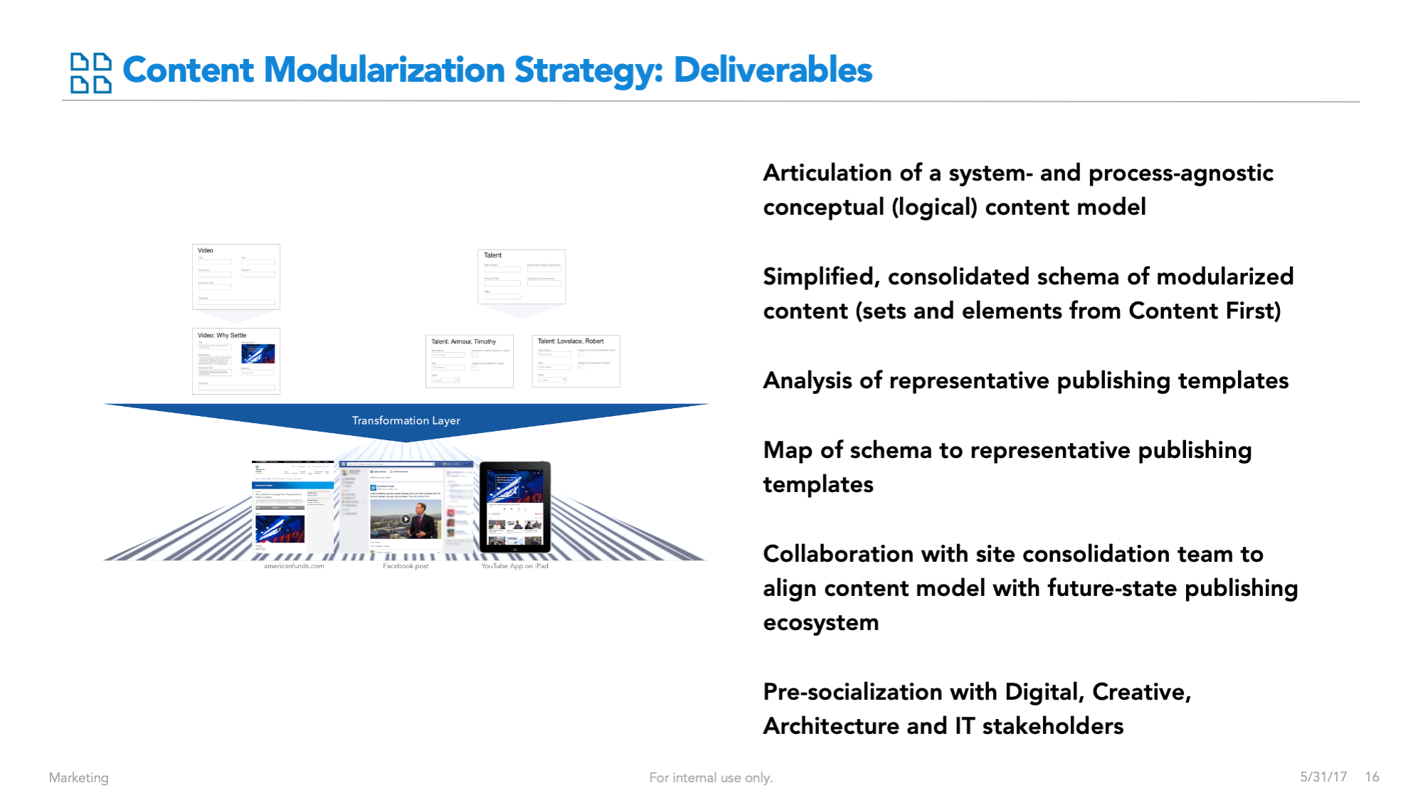 I led a team of content strategists, content creators, and technologists on a multiyear initiative to maximize IP value and support the growing demand for multi-channel digital experiences by standardizing content structures, streamlining approval processes, and building systems to manage content and assets.